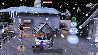 Christmas Blowjob with Sexy Blonde with Big Tits - Stuck in a Wall 3D Animation