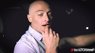 Inked babe in a taxi knows how to ride a cock and make it deep throat